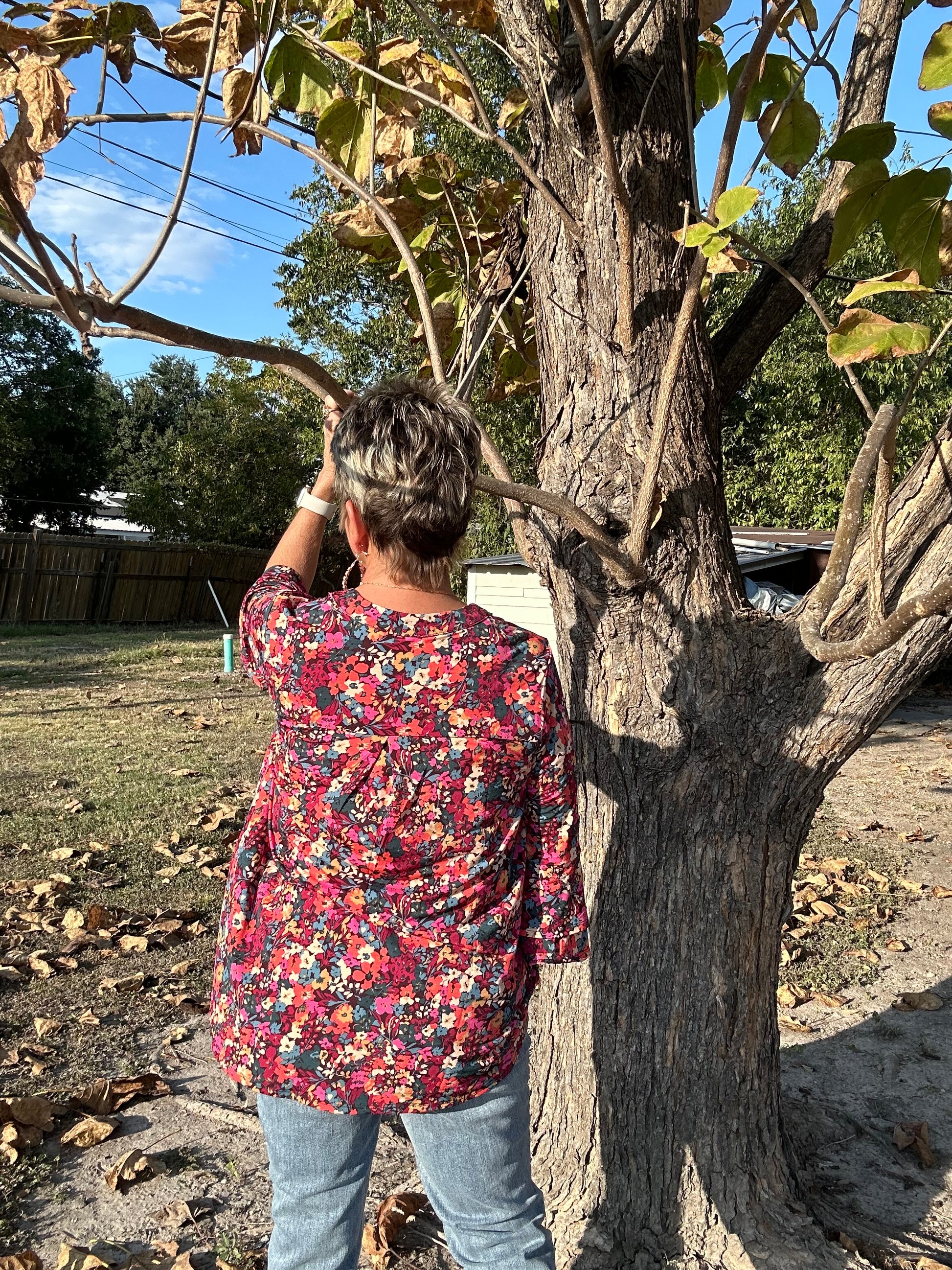 Meet the belled LIZZY! A fresh take on effortless elegance. Designed with a relaxed fit, this versatile top features a refined Lizzy neck and beautifully tiered bell sleeves that add a touch of romantic flair
