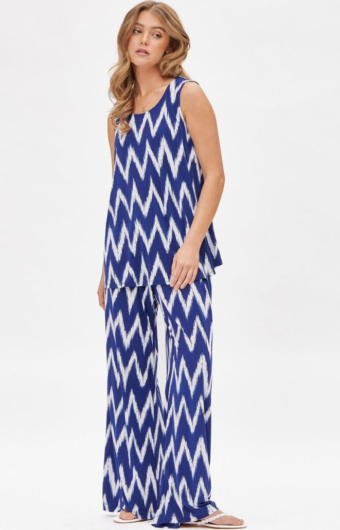 Gorgeous and breezy, gracing your body with a fit that's both flattering and relaxing, this wrinkle-free printed set is the perfect solution for you this spring/summer! We love the sleeveless blouse that prioritizes both comfort and style, which can easily transition from travel to leisure. The unique print in trendy hues features a loose-fit and an elastic waistline that will keep you cool for the warmer days ahead! • Inseam: 28.5" • Model is 5’8” and wearing size Small