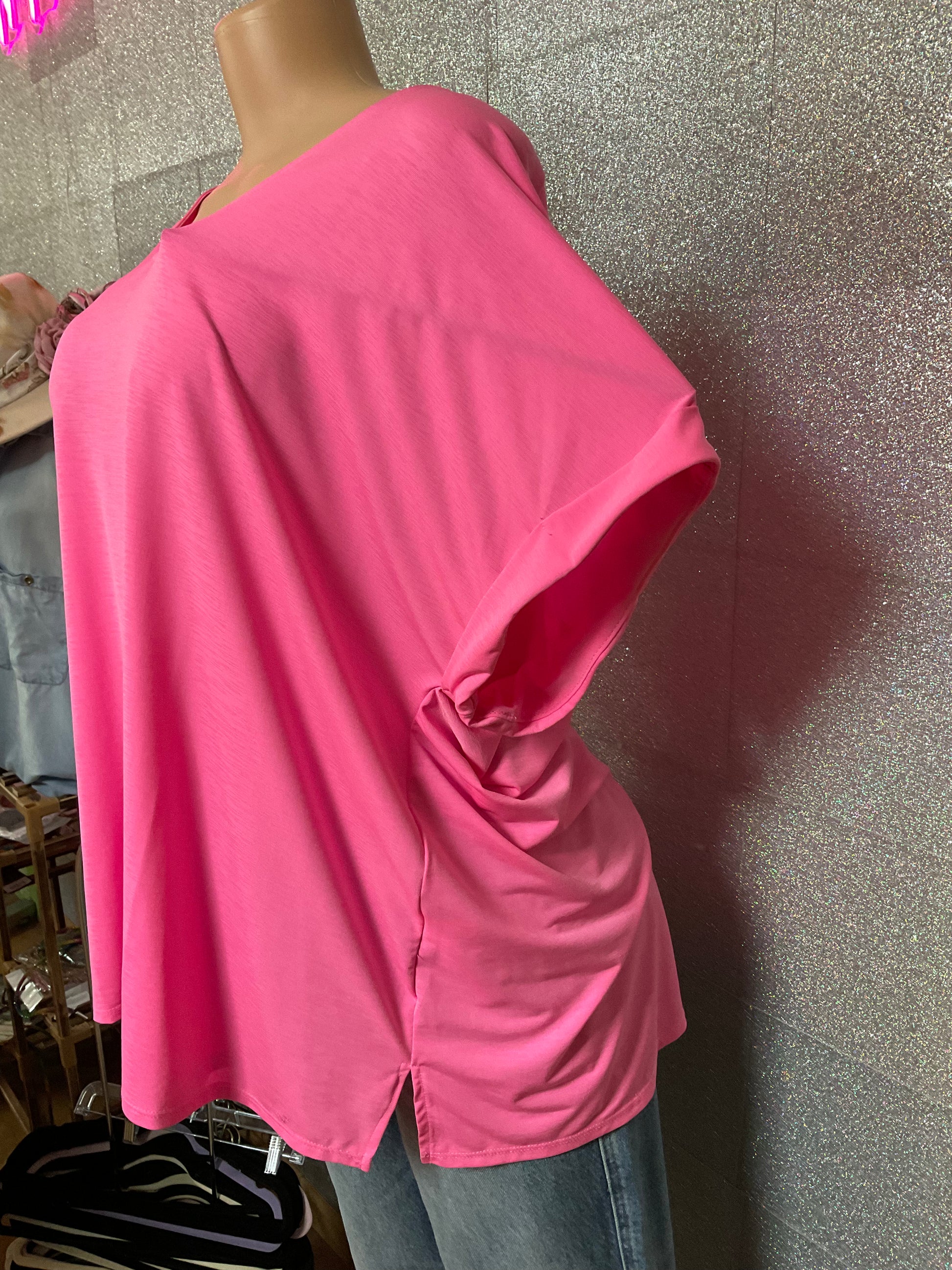 Dear Scarlett signature loose-fitting top features a v-neck and short cuffed sleeves.