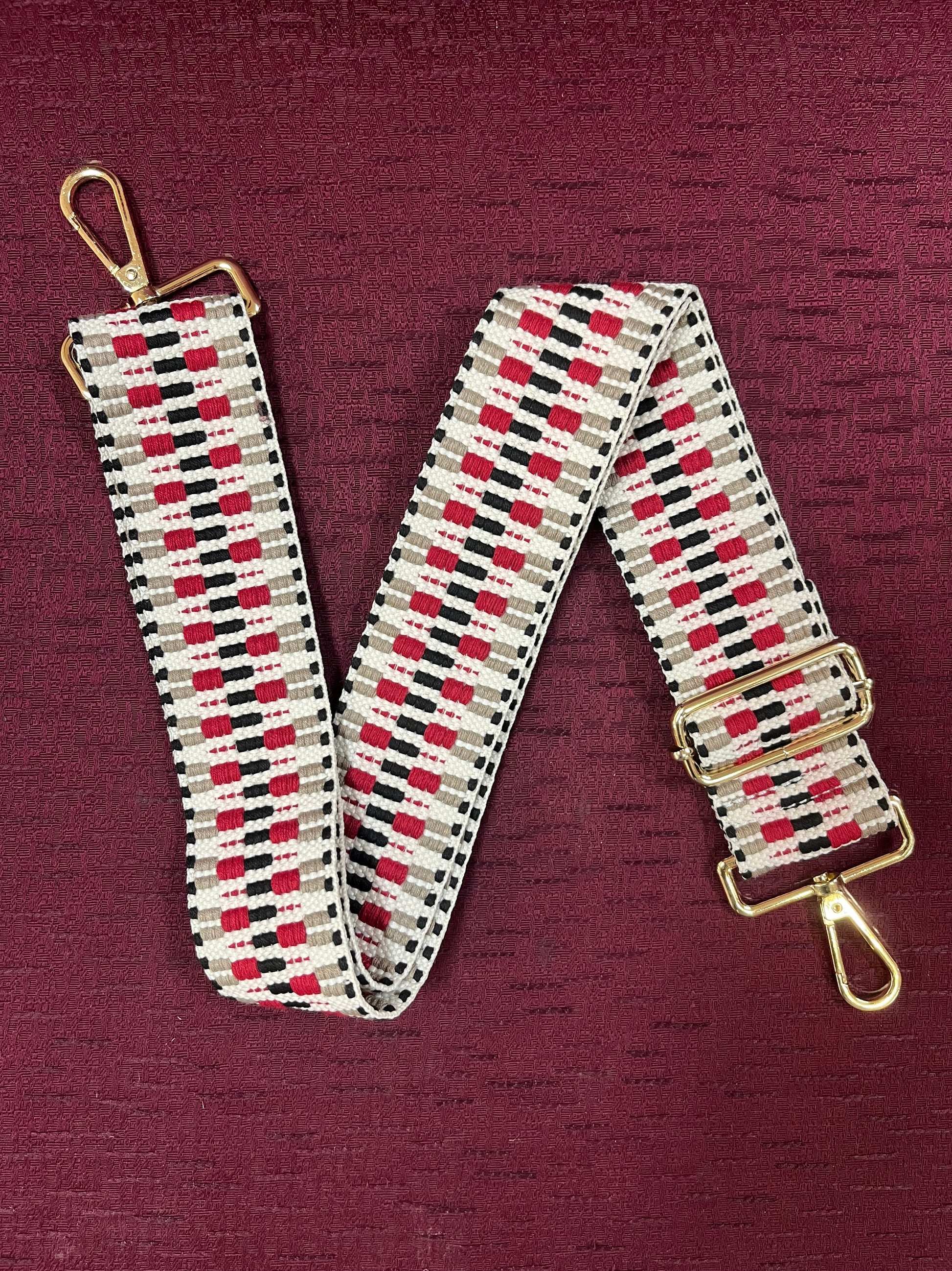 Decorative purse straps with gold clips on both ends. Adjustable from 26”-50”