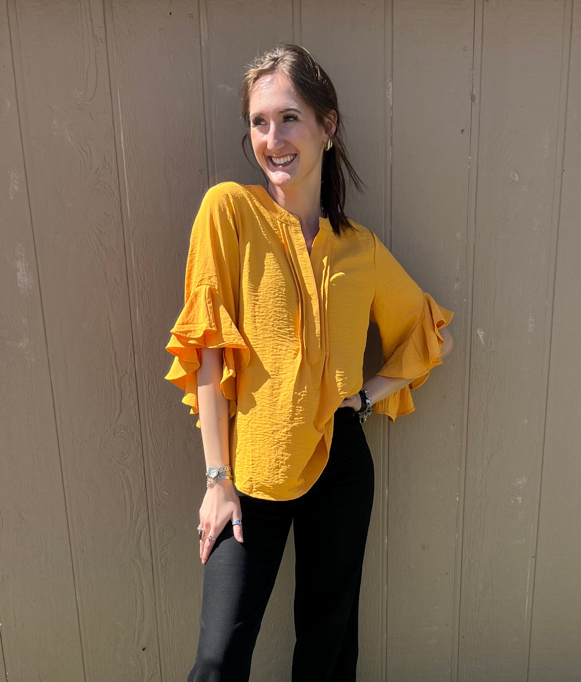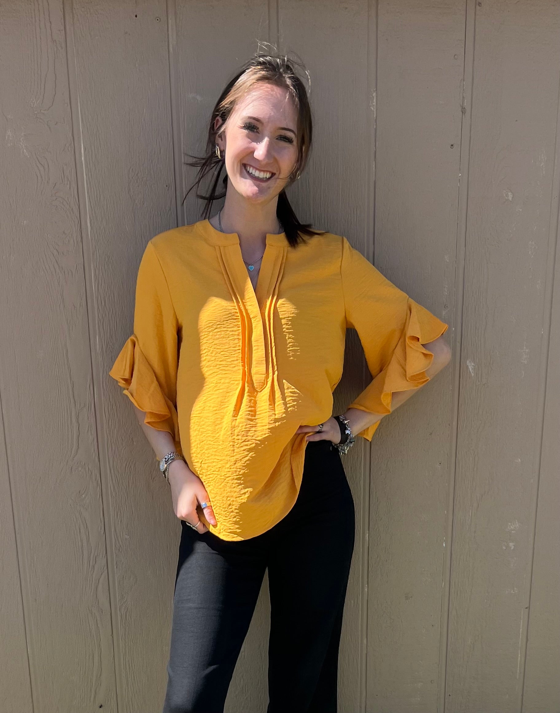 Half ruffle sleeve, beautiful rich yellow color