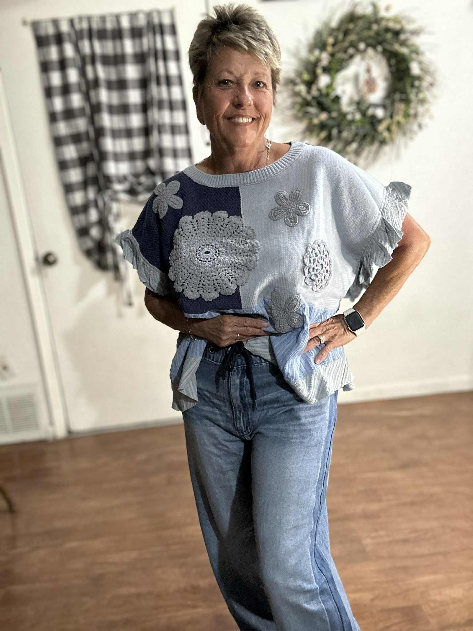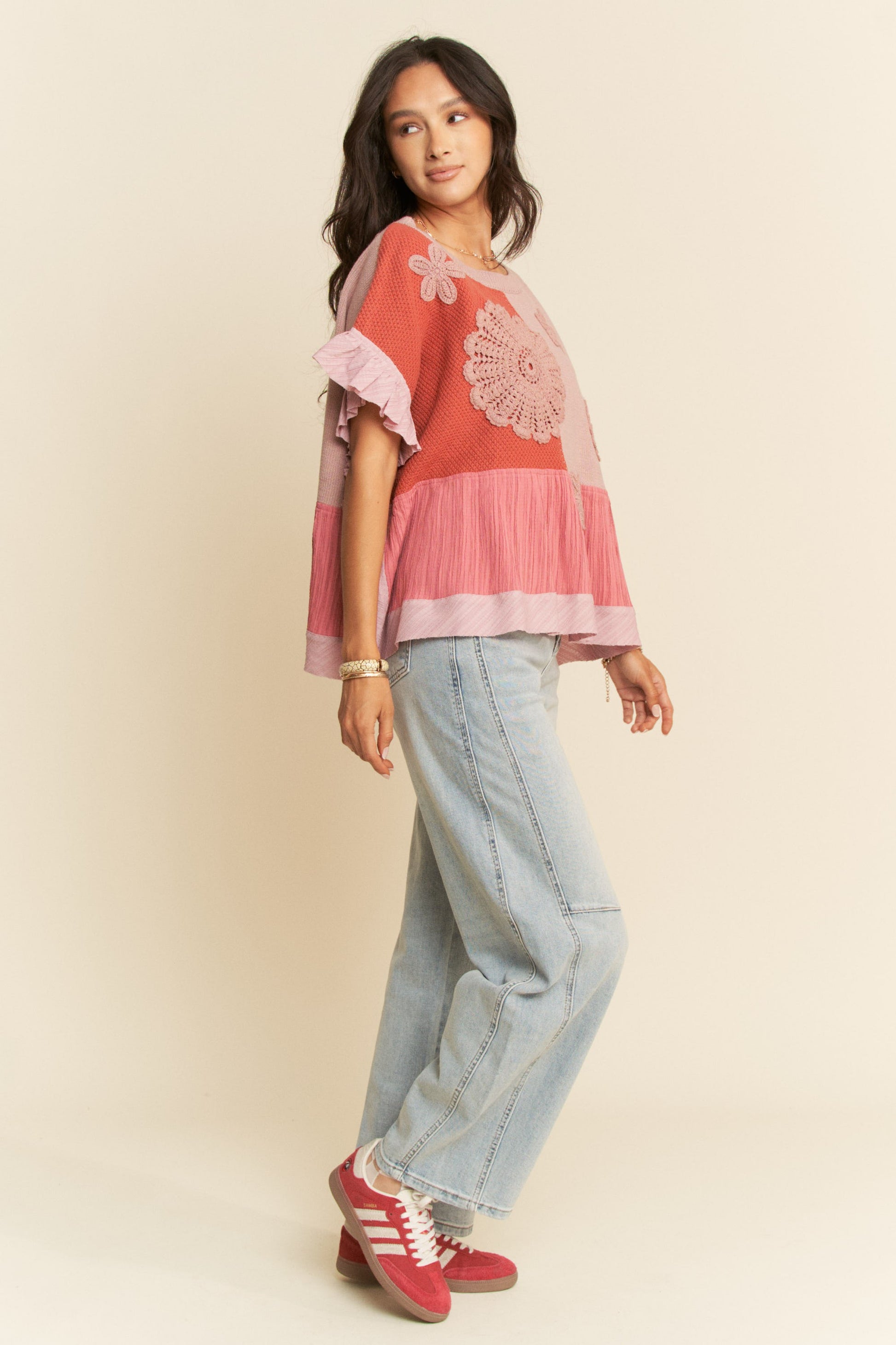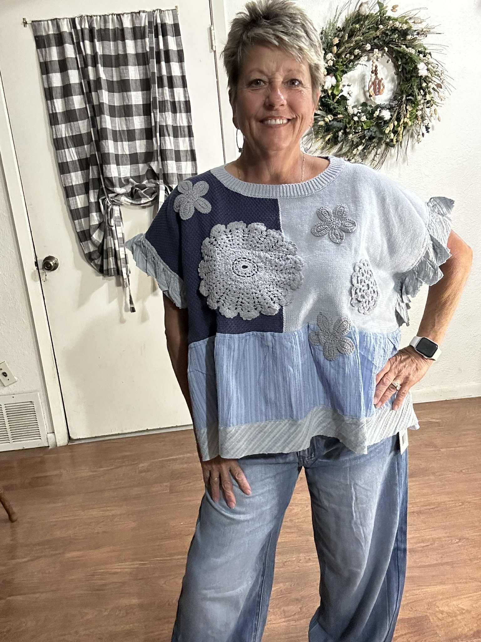 Crochet over size tops  rich colors of blues and in Red -Pink