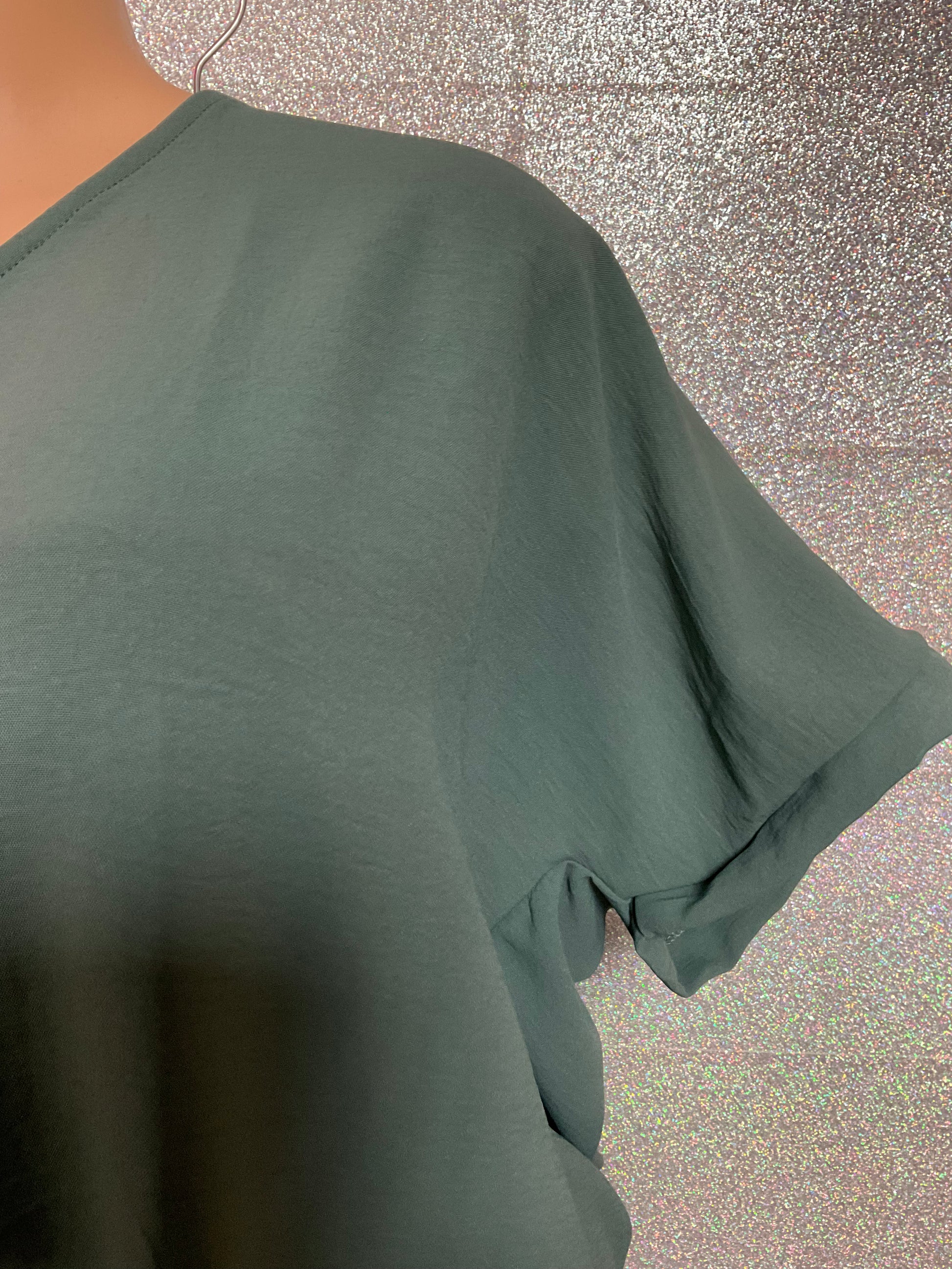 Mittoshop brand top for plus size has a wide vneck opening and cuffed short sleeves. Top is 100% polyester.