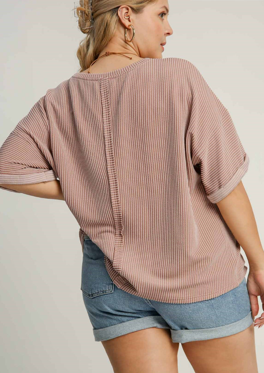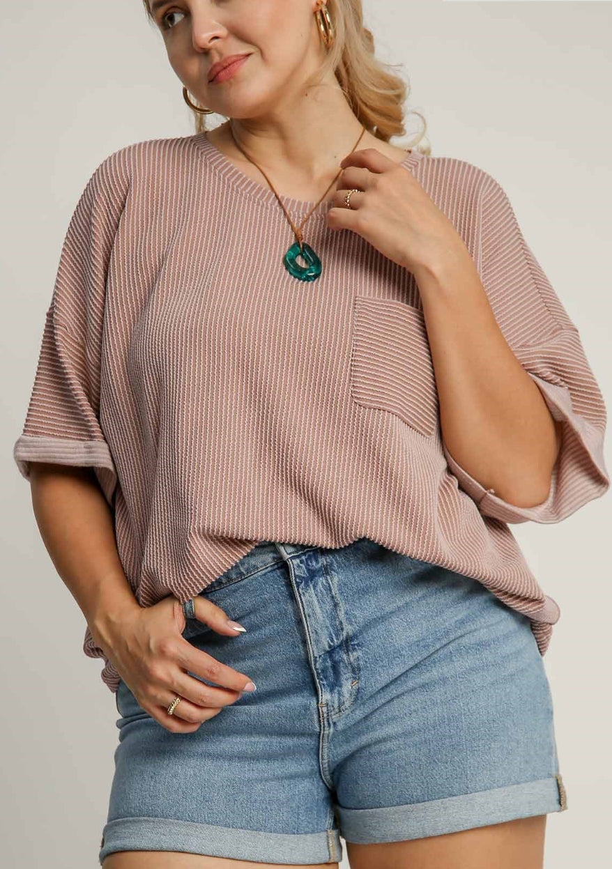 Textured Knit Boxy Cut Top & Chest Pocket Detail