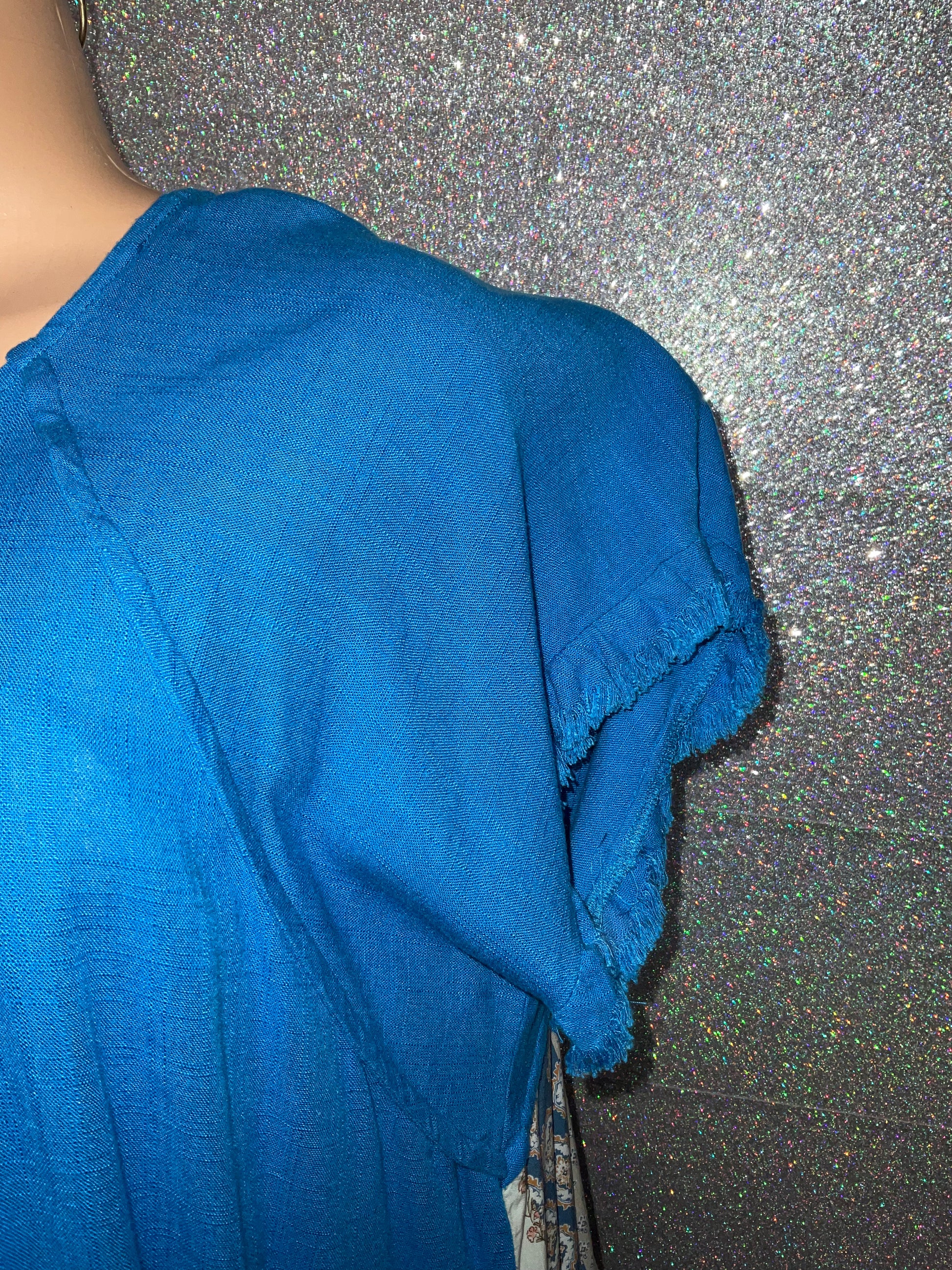 Umgee style linen top with a cotton insert for the back. 55% linen, 45% rayon