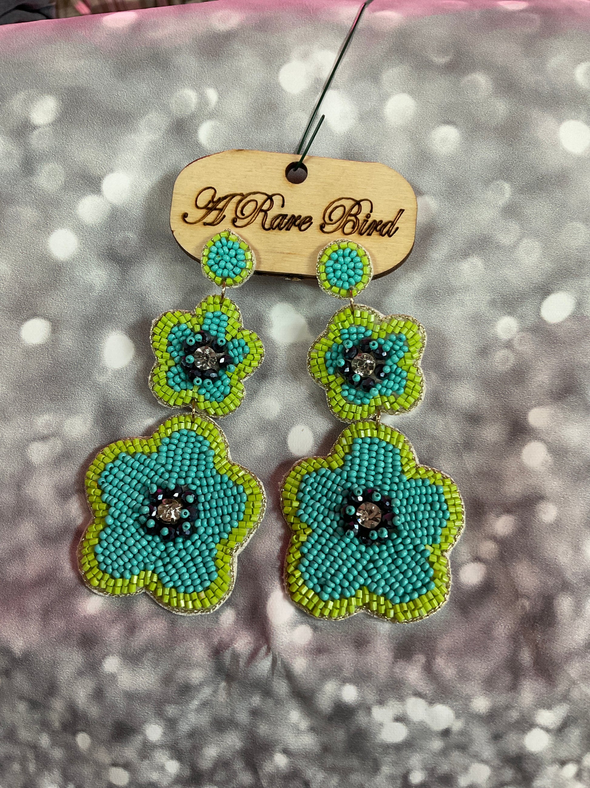 These earrings feature three different size tiers of decorative beads for pierced ears